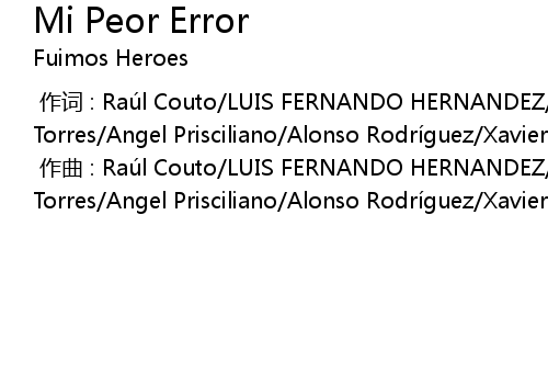 | [00:00.000] | zuò cí : Raú l Couto LUIS FERNANDO HERNANDEZ Jorge Catala Alejandro Torres Angel Prisciliano Alonso Rodrí guez Xavier Bessa Juan Pablo Soto |