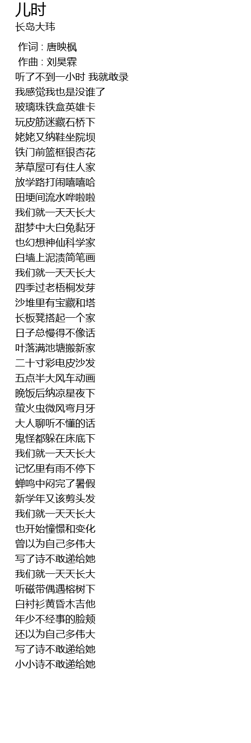 | [00:53.03] | wǒ men jiù yì tiān tiān cháng dà |