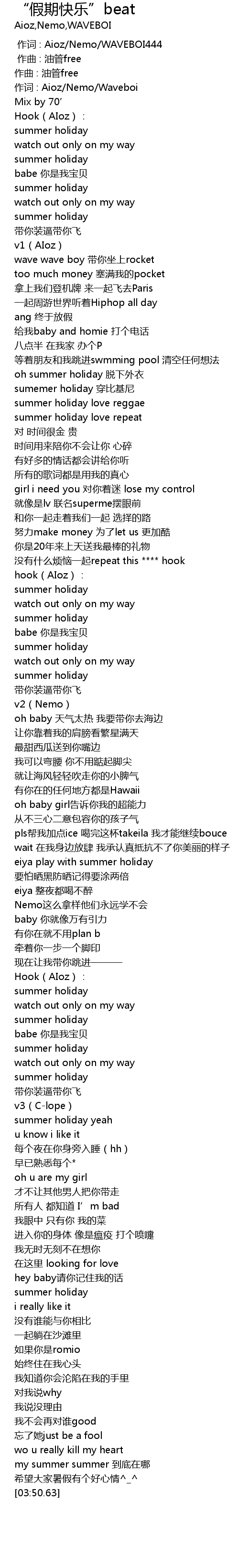 | [00:52.40] | oh summer holiday 脱下外衣 |