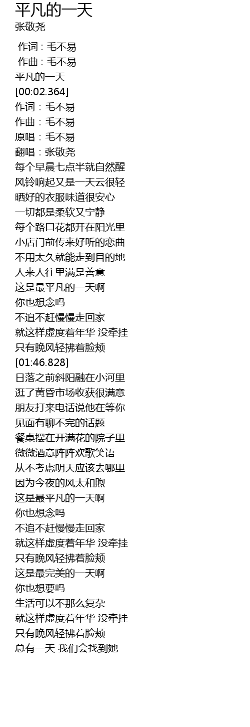 | [03:02.698] | zhè shì zuì píng fán de yì tiān a |