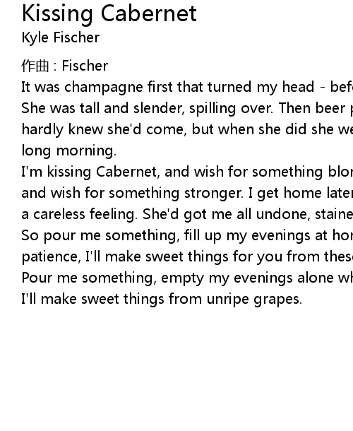 | I' m kissing Cabernet, and wish for something blonder. Then switch to Chardonnay and wish for something stronger. I get home later than I ought to, come in with a careless feeling. She' d got me all undone, stained me, left me reeling. | |
