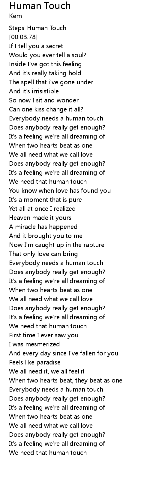 | [02:57.92] | Everybody needs a human touch |