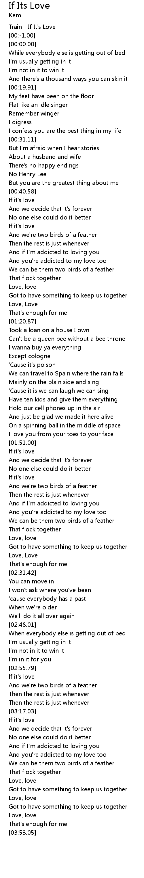 | [00:-2.00] | Train - If It's Love |