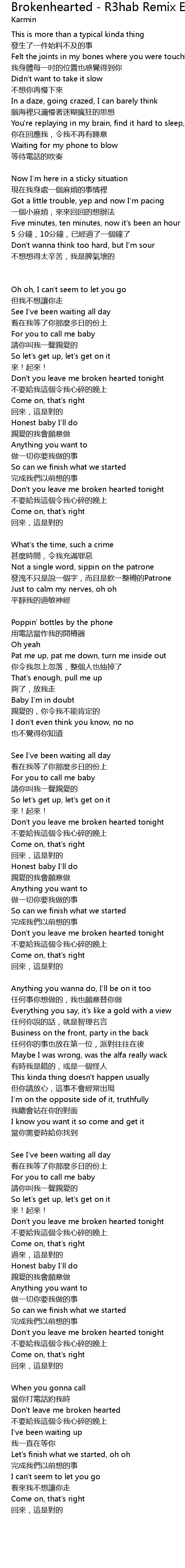 | Song | Brokenhearted - R3hab Remix Edit |