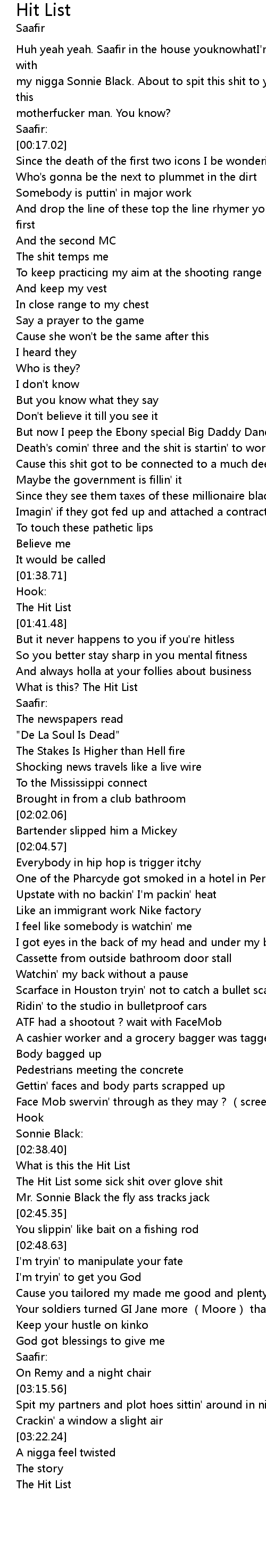 | [02:40.86] | The Hit List some sick shit over glove shit |