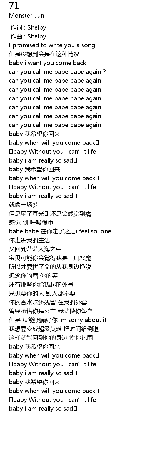 | [01:09.895] | babe babe 在你走了之后i feel so lone |