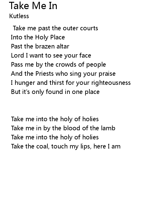 | Take me into the holy of holies | |