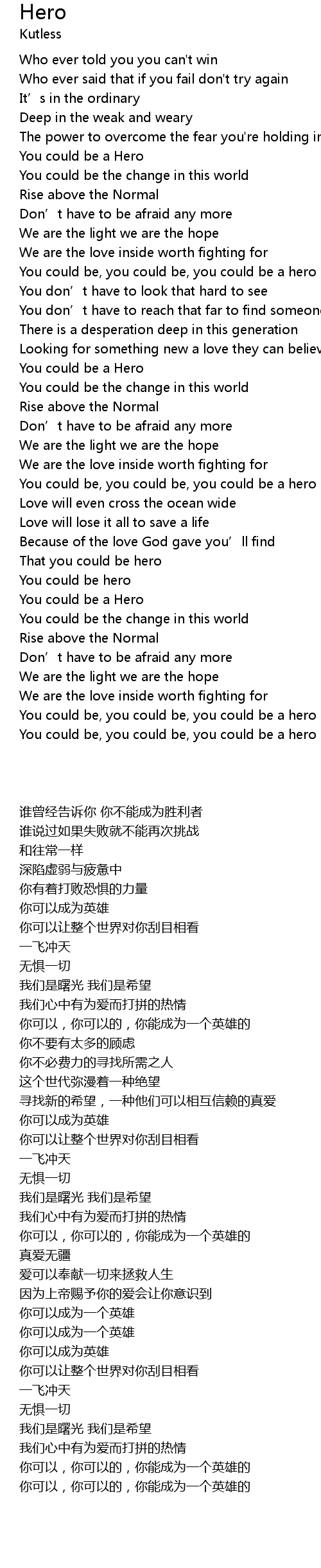 | [02:01.800] | You could be, you could be, you could be a hero |