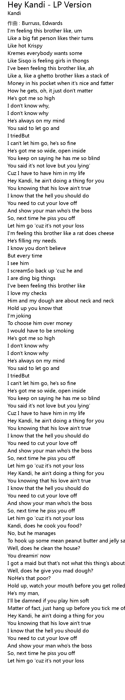 | Song | Hey Kandi - LP Version |