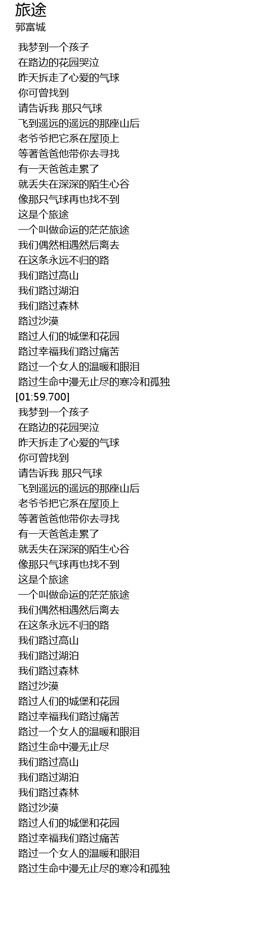 | [01:01.100] | 像那只气球再也找不到 |