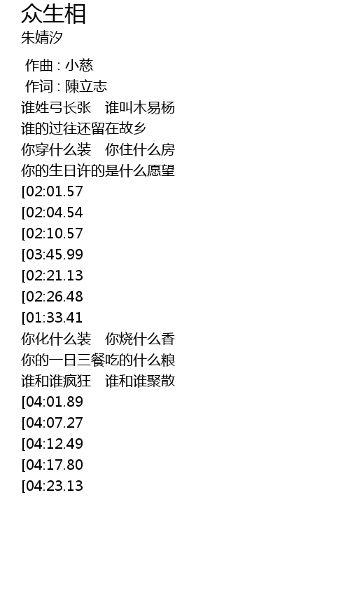 | [01:00.93][02:04.54] | 一起来观赏众生相 |