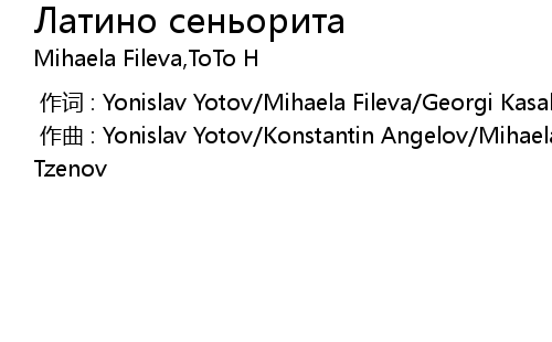 | [00:00.000] | 作词 : Yonislav Yotov/Mihaela Fileva/Georgi Kasabov |