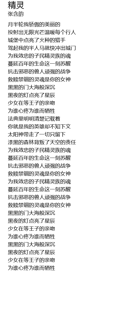 | [00:41.94] | 为我效忠的子民精灵族的魂 |