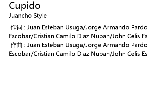 | [00:00.000] | 作曲 : Juan Esteban Usuga/Jorge Armando Pardo/Daniel Esteban Calle Escobar/Cristian Camilo Diaz Nupan/John Celis Escobar |