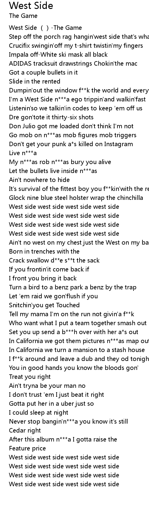 | [00:39.574] | I'm a West Side n***a ego trippin'and walkin'fast |