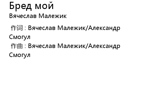 | [00:00.000] | 作词 : Вячеслав Малежик/Александр Смогул |