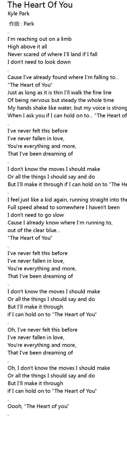 | [00:44.77] | When I ask you if I can hold on to... "The Heart of You" |