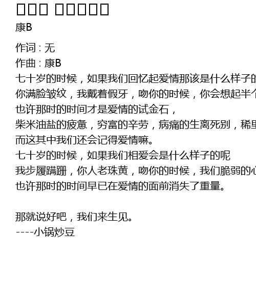 | qī shí suì de shí hòu, rú guǒ wǒ men huí yì qǐ ài qíng nà gāi shì shén me yàng zi de ne. | |
