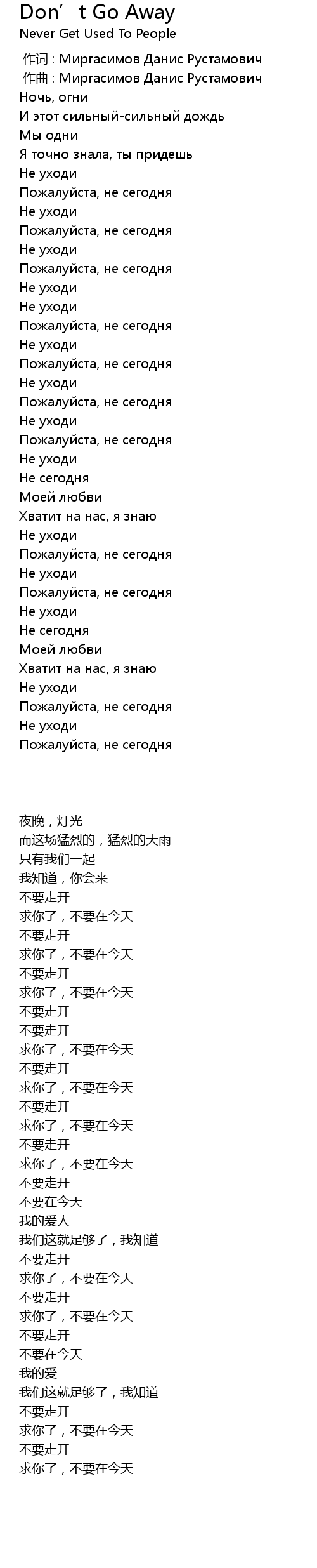 | [00:00.000] | 作词 : Миргасимов Данис Рустамович |