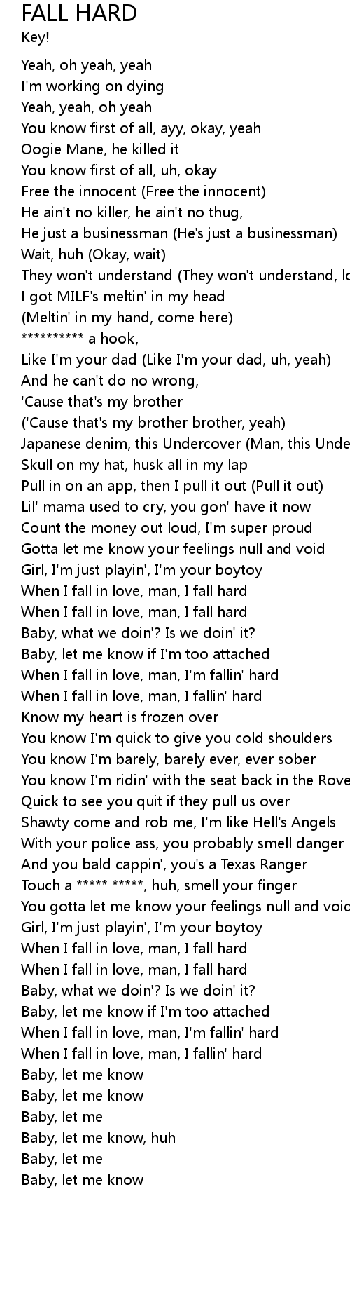 | [01:04.30] | When I fall in love, man, I'm fallin' hard |