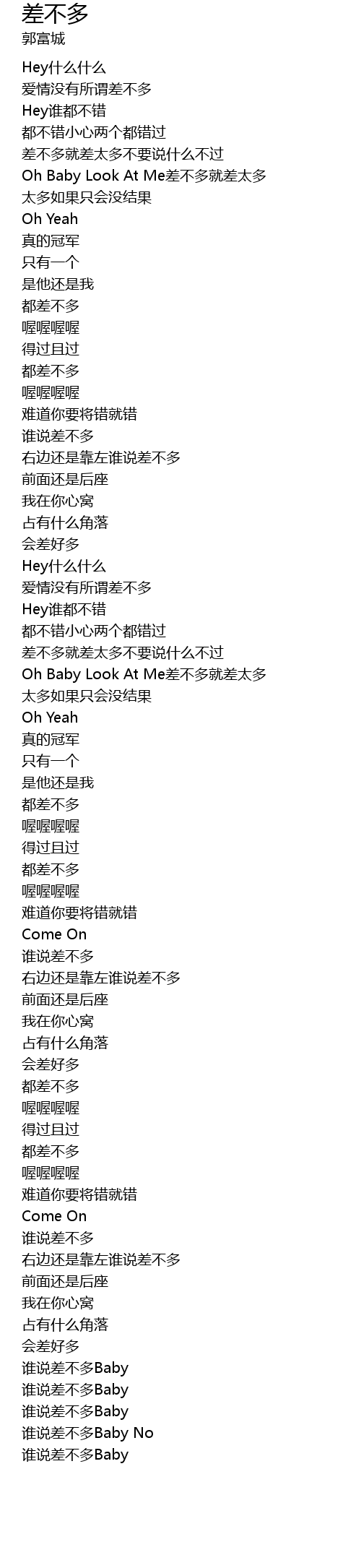 | [00:39.31] | Oh Baby Look At Me差不多就差太多 |
