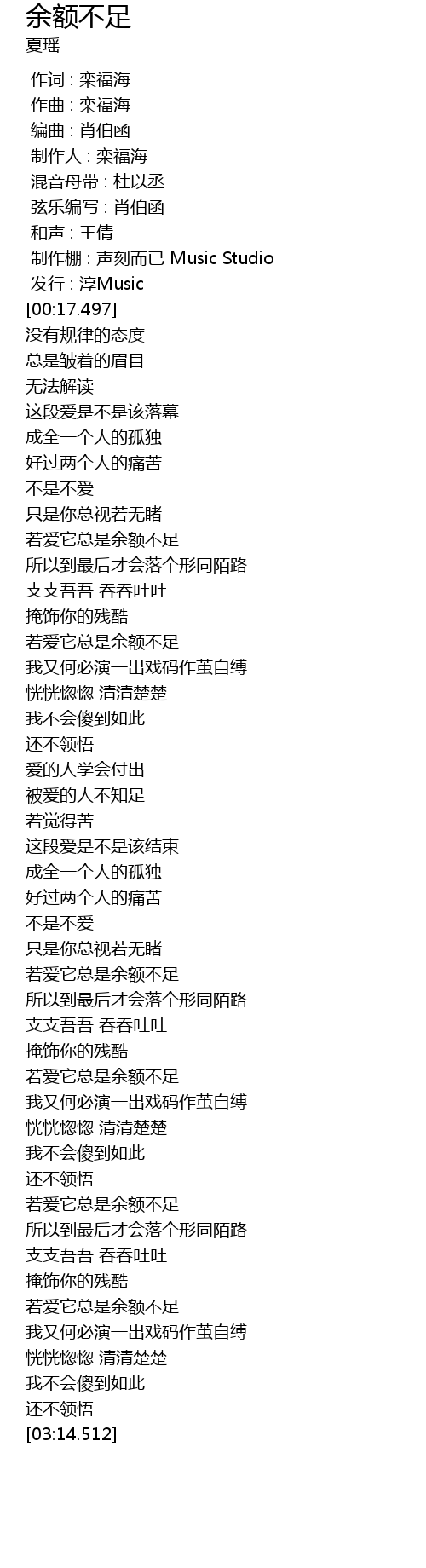 | [02:42.377] | ruò ài tā zǒng shì yú é bù zú |
