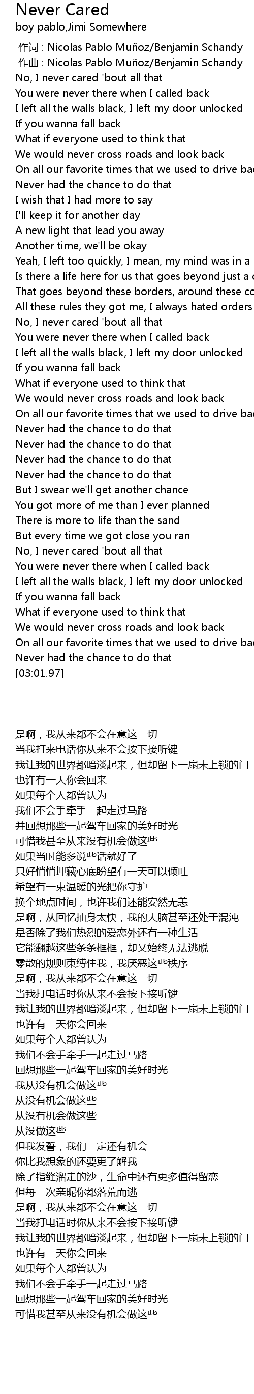 | [00:00.000] | 作词 : Nicolas Pablo Muñoz/Benjamin Schandy |