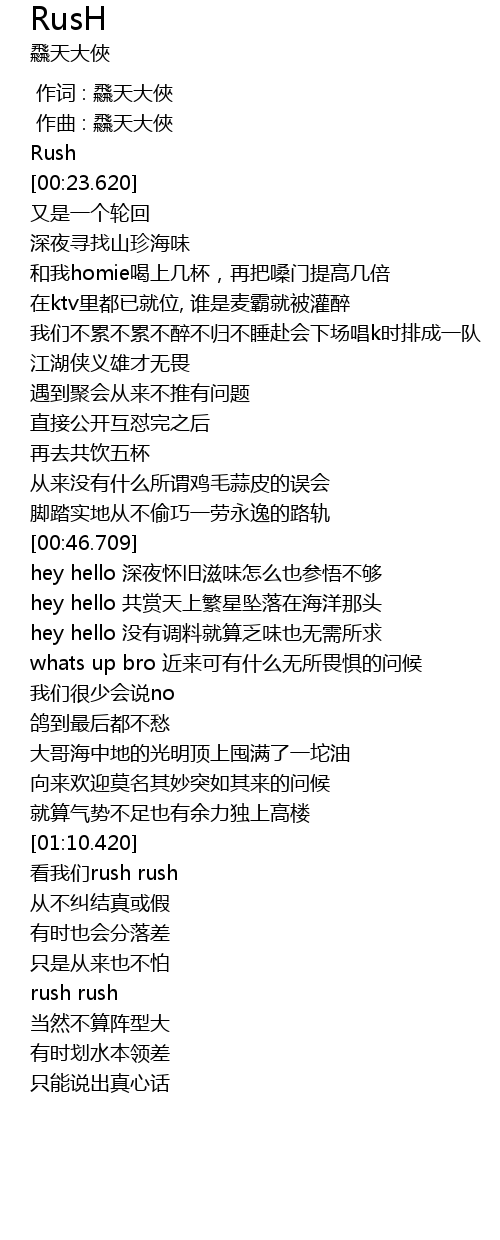 | [00:00.000] | 作词 : 飝天大俠 |