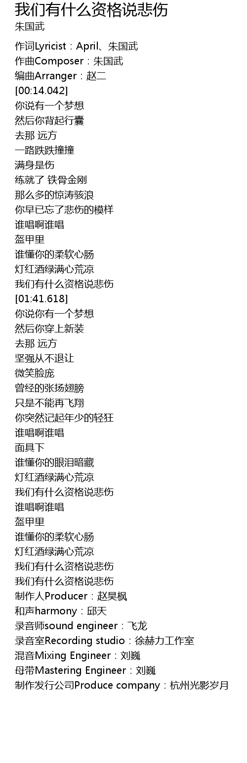 | [01:32.306] | wǒ men yǒu shén me zī gé shuō bēi shāng |