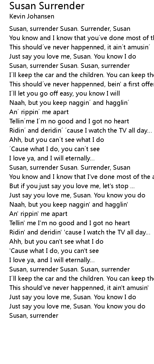 | Susan, surrender Susan. Surrender, Susan | |