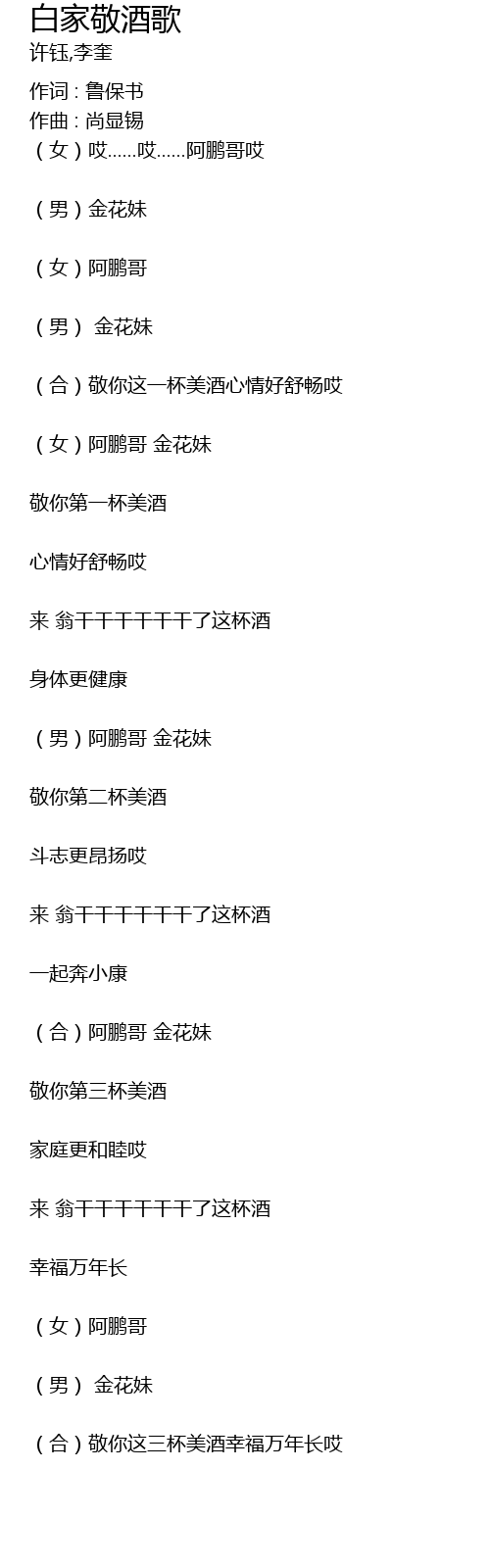 | (合)敬你这一杯美酒心情好舒畅哎 | |