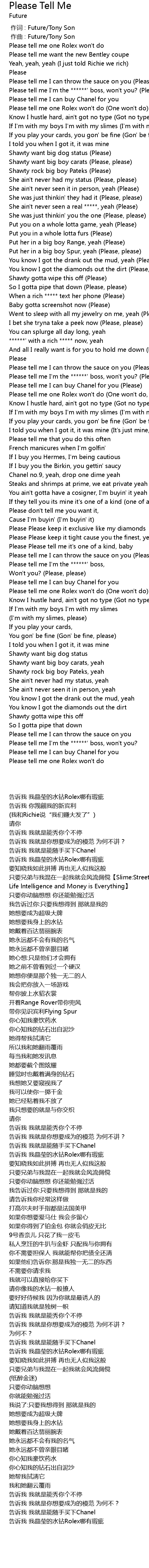| [00:00.000] | 作词 : Future/Tony Son |