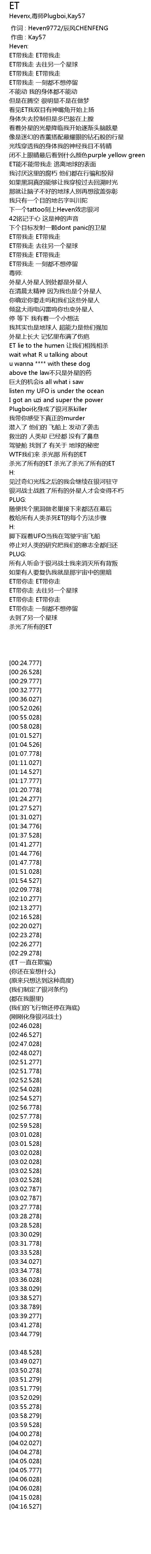 | [03:38.029] | 教给所有人类杀死ET的每个方法步骤 |