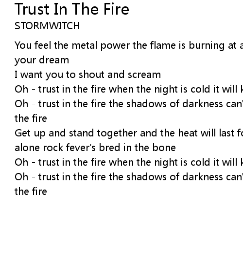 Oh - trust in the fire the shadows of darkness can't do you no harm so trust in the fire |