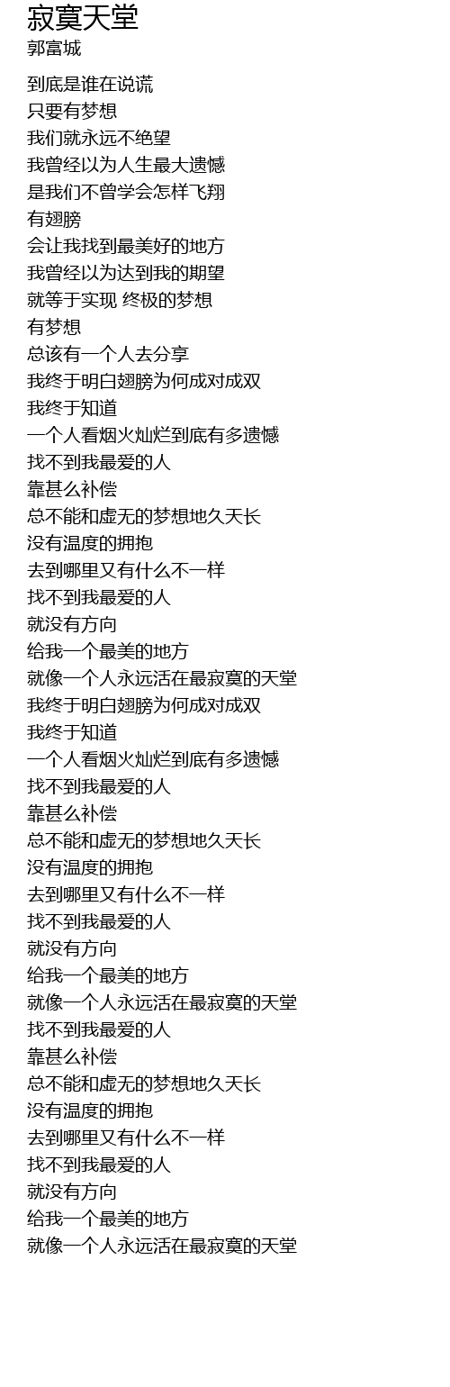| [04:18.17] | 就像一个人永远活在最寂寞的天堂 |