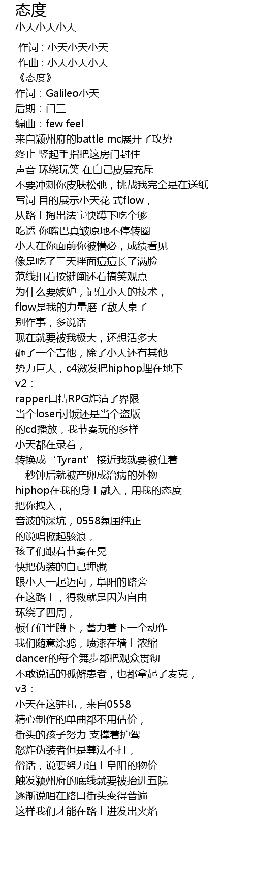| [00:00.713] | zuò qǔ : xiǎo tiān xiǎo tiān xiǎo tiān |