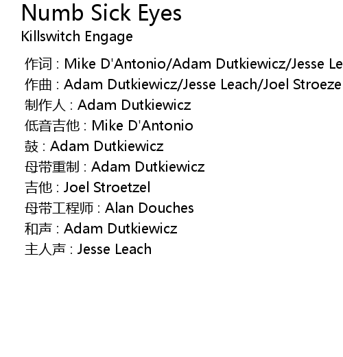 | [00:00.000] | zuò cí : Mike D' Antonio Adam Dutkiewicz Jesse Leach Joel Stroezel |