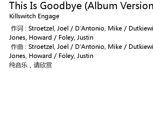 | [00:01.000] | 作曲 : Stroetzel, Joel / D'Antonio, Mike / Dutkiewicz, Adam / Jones, Howard / Foley, Justin |