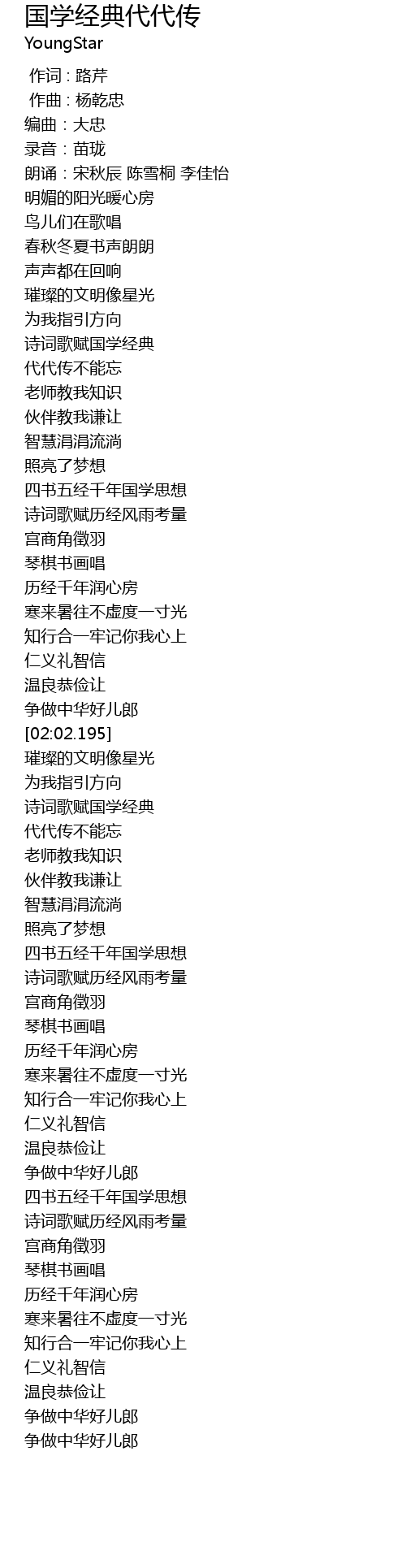 | [02:42.098] | sì shū wǔ jīng qiān nián guó xué sī xiǎng |