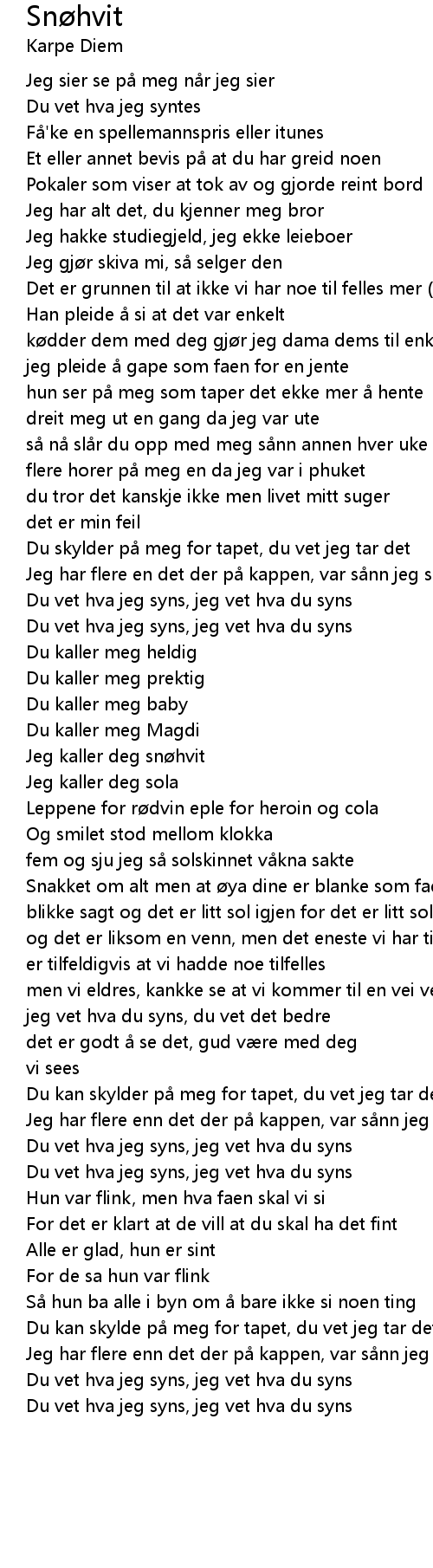 | s n sl r du opp med meg s nn annen hver uke yeah | |