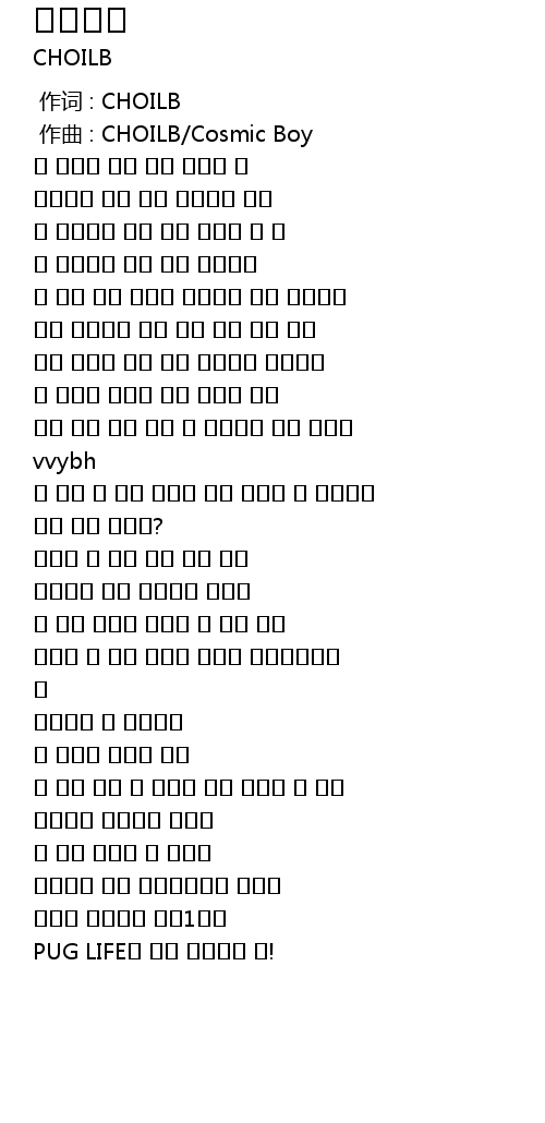 | [01:09.014] | PUG LIFE를 사는 최엘비를 해! |