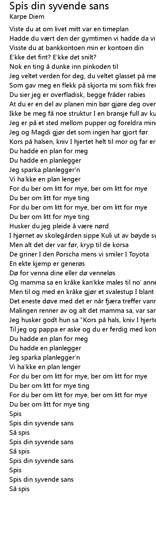 | [01:00.91] | Kors p halsen, kniv I hjertet helt til mor og far er d d |