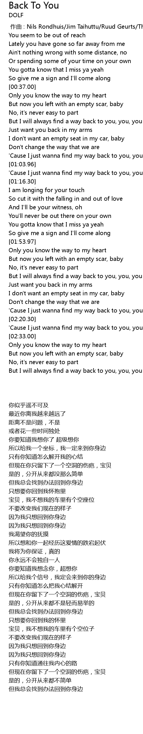| [00:47.15] | But I will always find a way back to you, you, you |