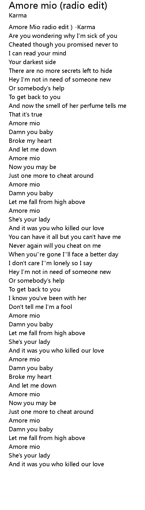 | [00:00.390] | Amore Mio radio edit)-Karma |