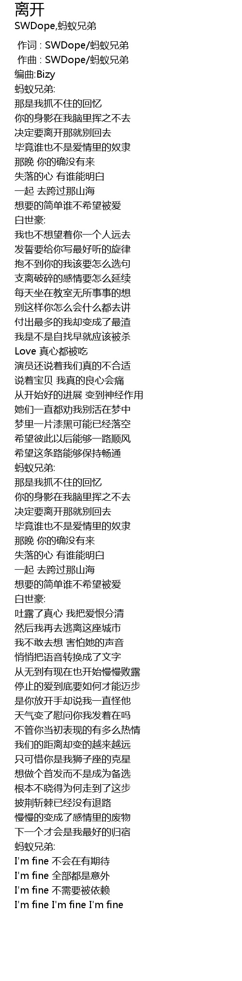 | [00:00.000] | 作词 : SWDope/蚂蚁兄弟 |