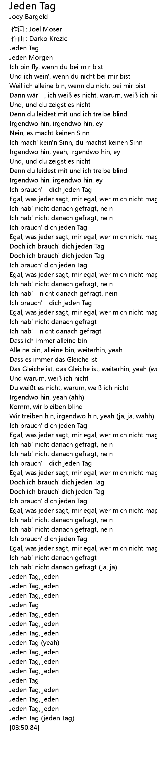 | [01:46.75] | Ich brauch' dich jeden Tag |