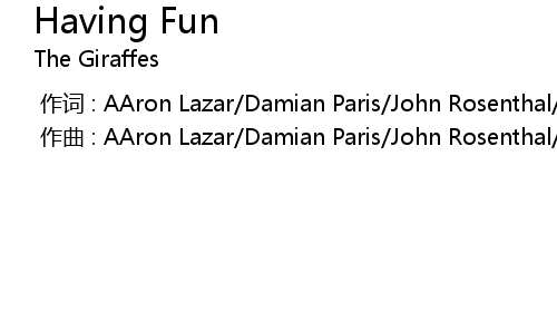 | [00:00.000] | 作词 : AAron Lazar/Damian Paris/John Rosenthal/Andrew Totolos |