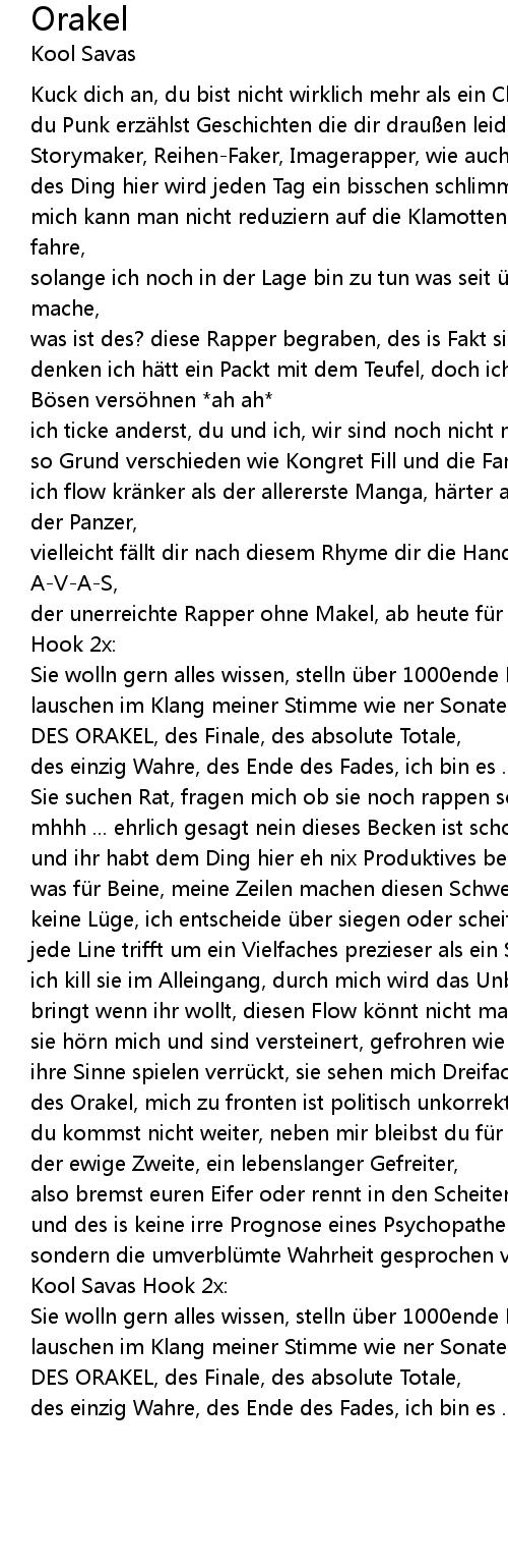 | der unerreichte Rapper ohne Makel, ab heute für euch das Orakel... | |