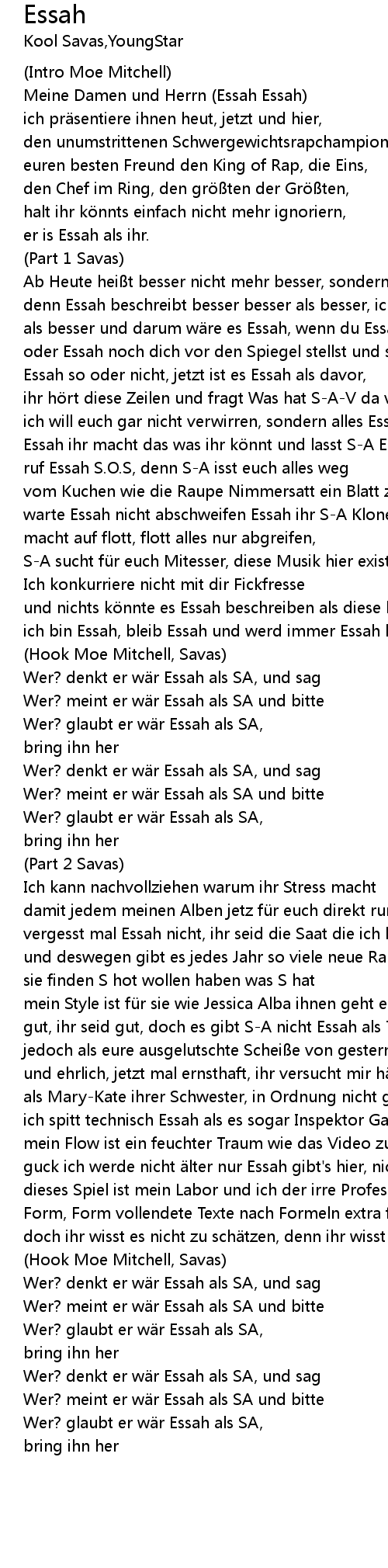 | denn Essah beschreibt besser besser als besser, ich mein Essah, | |