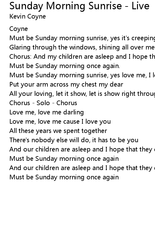 Must be Sunday morning sunrise, yes it's creeping down on me |